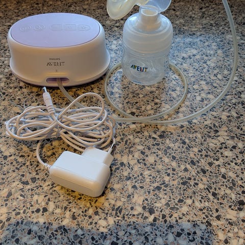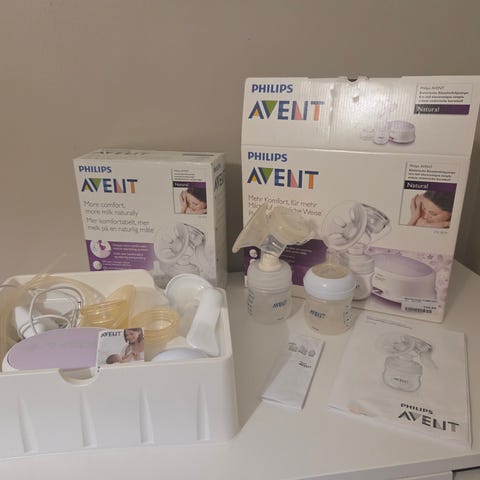 Hyväkuntoinen rintapumppu. Sähkökäyttöinen, toimii myös paristoilla. Kolme eri voimakkuutta ja herutustoiminto. Kaikki osat steriloitu kiehuvalla vedellä.