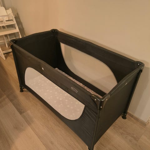 Siisti ja kaikinpuolin ehjä matkasänky. Patja, kantokassi ja lakanat myös mukana.