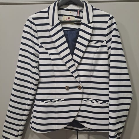 Kotimainen juhlajakku, koko 40. Kainalo kainalo 53cm. A-Mallinen. Edessä napitus. Edessä oikealla puolen vyötärön kohdilla joku pieni musta jälki, kuva yritetty ottaa ja huomioitu hinnassa.