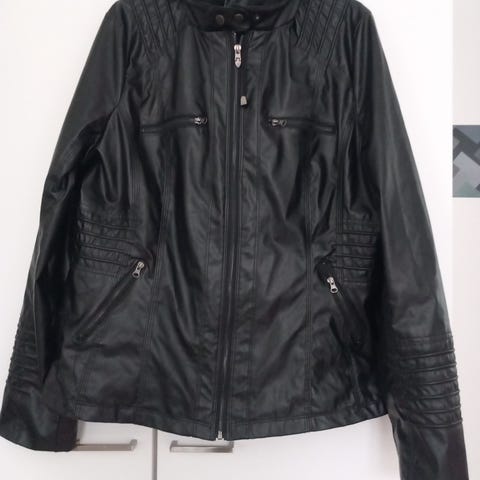 H&M naisten takki valmistettu tekonahasta. Väri musta, koko XL. Takissa on pitkä hiha ja kaksi etutaskua. Sopii erilaisiin asukokonaisuuksiin ja tarjoaa keinonahkasta valmistetun vaihtoehdon takkivaatteeksi.