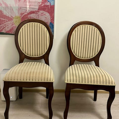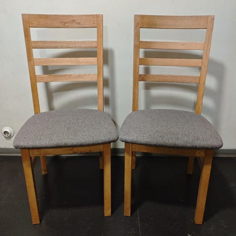 Selling a set of 4 wooden dining chairs. They are strong, stable, and comfortable. All chairs are in good used condition and have normal signs of use, but nothing is broken or loose.