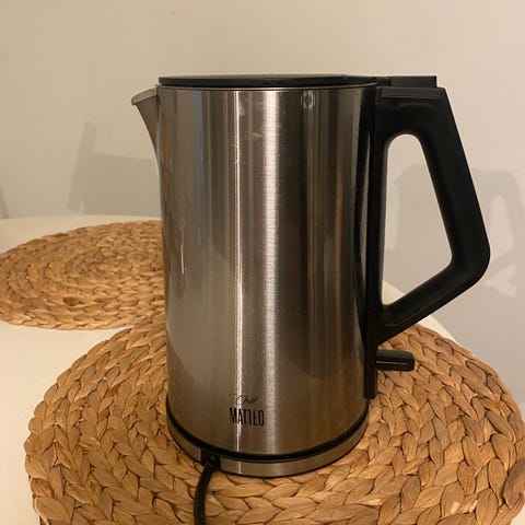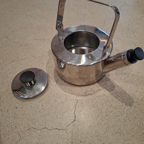 Vähällä käytöllä (lähinnä nättinä sisustusjuttuna seissyt;) ollut vesipannu, 2litrainen. Ruostumatonta terästä.