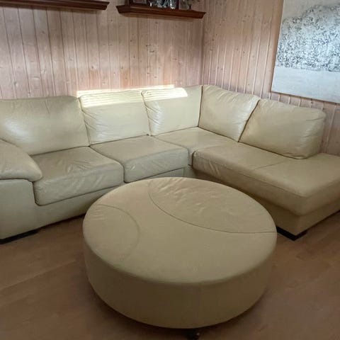 Täysnahkaa, valkoinen kulmadivaanisohva 7henk.