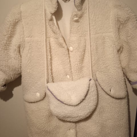 Suloinen pinkki karvatakki vetoketjutaskuilla. Muutama tumma jälki selässä, muutoin siisti. Lähtee todennäköisesti taikasienellä.