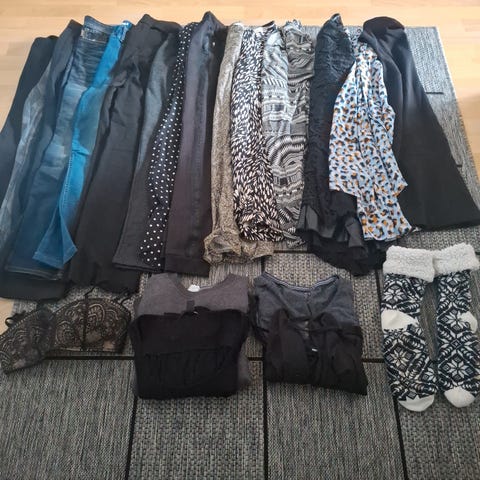 Ok kuntoista vaatetta edullisesti eteenpäin koossa L(xl). Housuja, mekkoja, paitoja, takkeja yms. Nouto Hernemäestä. Voin myös postittaa, mutta sitten tulee maksamaan kahden paketin verran.