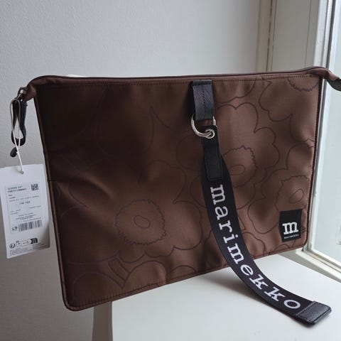 Myydään käyttämätön Marimekon musta miniunikko kuosinen läppärinsuojuspussi.