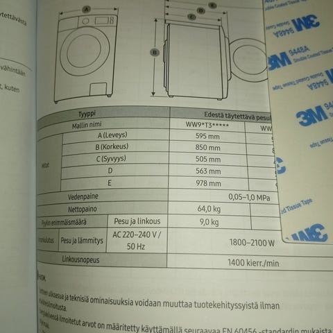 Samsung edestä täytettävä pesukone