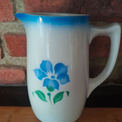 Arabia 2 litran maitokannu. Korkeus 15 senttiä ja halkaisija 11 senttiä. Kultaus hyvässä kunnossa. Nokassa pientä kulumaa. Otettu kuvat. Ei lohkeamia.
