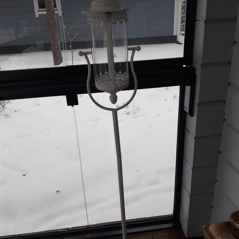 Lasitetulla terassilla ollut lyhty.