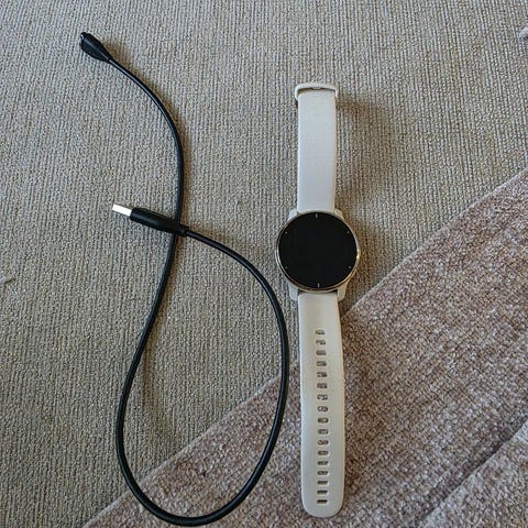 Garmin Venu2. Akku kestää yli viikon normikäytössä. Lasi naarmuilla mutta ei rikki. Mukaan kolme kangasranneketta ja latausjohto. Vain nouto.