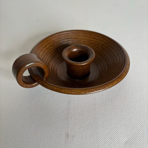 Myydään Arabian vanha kynttilänjalka, kruunuleima 1964. Design Kaarina Aho. Korkeus n. 10cm ja halkaisija 19cm. Vähän krakeloitumista.