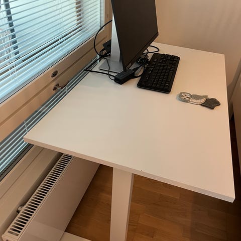 Ostettu täältä yhtä tapahtumaa varten, muttei ollutkaan tarvetta, siksi myyntiin samalla hinnalla. Pöytä on käytetyssä, mutta siistissä kunnossa. Pöytälevyssä on pari pientä lähes huomaamatonta käytön jälkiä (kts. kuvat). Pöytä vaikuttaa tukevalta, ja sen säätömekanismi on pehmeä (testasin ikeassa). Pöytä oli valmiiksi osissa silloin kun ostin sen, ja on edelleen osissa.
