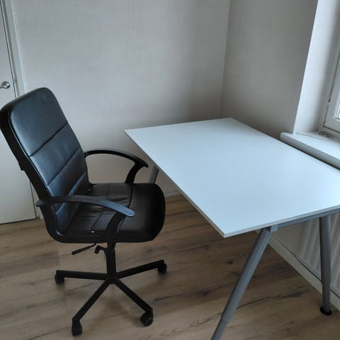 Myydään valkoinen, todella siisti säädettävä työpöytä. Pöydän koko 70cmx120cm. Korkeudensäätö kammella. Myydään erikseen pyörillä oleva harmaa työtuoli (Jysk). Tuolin hinta 30€. Pöytä ja tuoli yhteensä 135€.