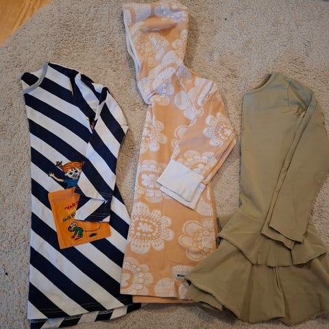 Kesämekot jotka talvella olleet käytössä ohuen pitkähihaisen kanssa. Merkit h&m, finlayson. Käytetty hyvä kunto. Yhden lapsen käyttämiä kaikki.