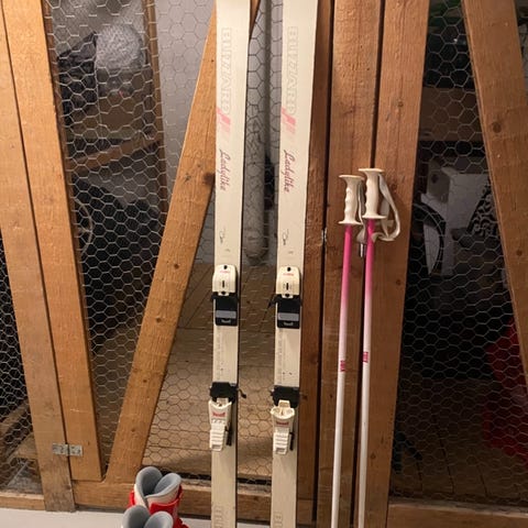 Vanha laskettelusetti noin 90-luvun tienoilta. Kuvissa tarkempia tietoja.
