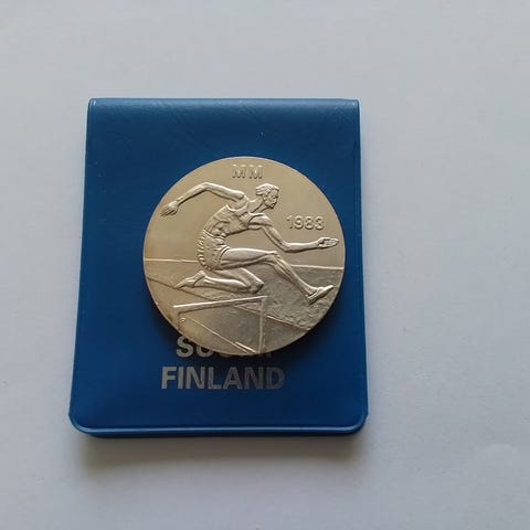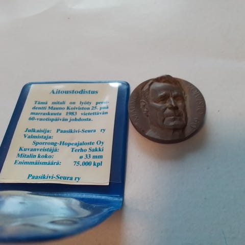 Hopeinen juhlaraha Suomen 60 vuotisen itsenäisyyden johdosta.