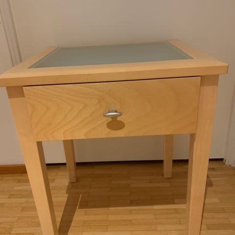 Jo tuotannosta poistuneet mukavan korkeat, tukevat Ikean yöpöydät, joissa vetolaatikko ja kaappi.