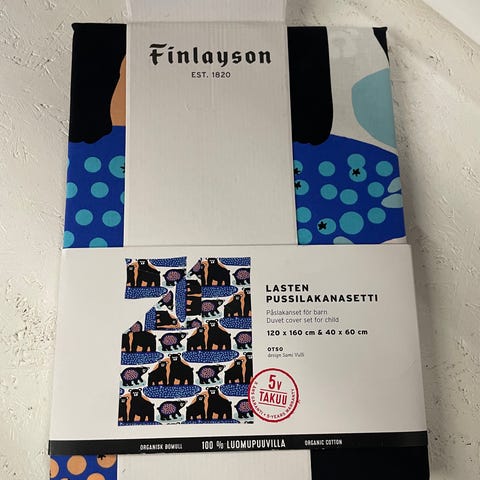 Finlayson Lasten pussilakanasetti sinivalkoinen. Setti sisältää pussilakanan 120 x 160 cm ja tyynyliinan 40 x 60 cm. Uusi, avaamaton paketti.