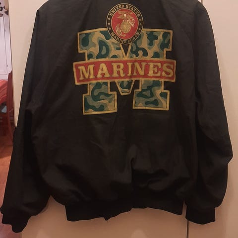 Vintage Amerikan meriväen huppari. Lappukoko XL, mutta istuu laatikkomaisesti, eli lyhyt ja leveä. Molemmat printit heijastavia, huppu pienikokoinen.