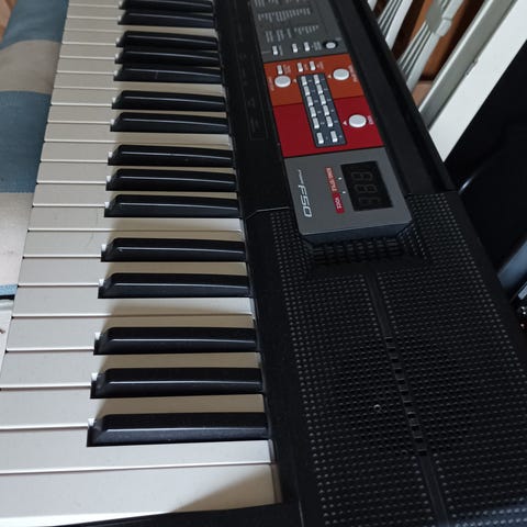 Kosketinsoitin. Keskimmäinen d soi huonommin. Paristokotelon kansi puutuu.