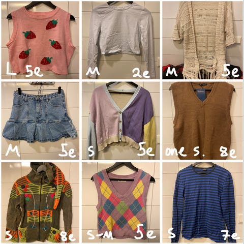 Hauska neule jossa hapsuja. Hapsujen päissä värikkäät helmet. Materiaalista en ole varma mutta arvelisin sen olevan puuvillaa. Pussittavat hihat, takana palmikkokuvio. One size, sanoisin että parhaiten sopii M-kokoiselle. Ei ole tullut samanlaista vastaan!
