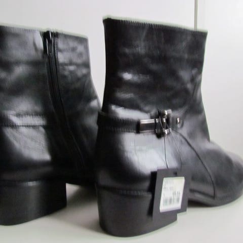 Nahkaiset saappaat, niin ulko- kuin sisäpuoli nahkaa, koko 40. Saappaissa on vetoketju sivulla ja korko 5cm. Väri tummanruskea. Tosi vähän käytetty.