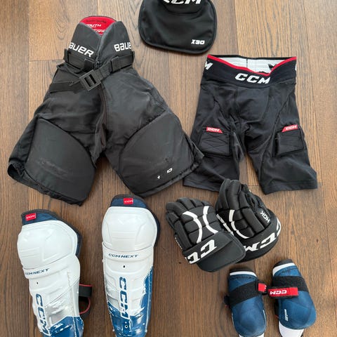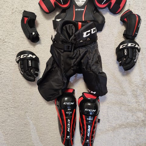 Jääkiekon varustesetti lapsille. Koko M eli noin 104-122cm pelaajalle.