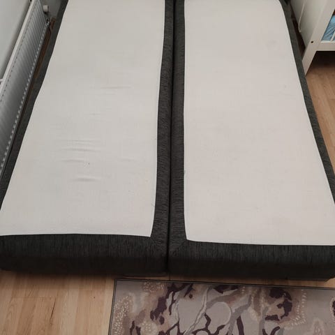 Huomioitavaa: Kankaissa on käytön jälkiä ja näkyviä tahroja (katso kuvat). Sängyn päälliset/kankaat on mahdollista puhdistaa, mutta pesu ja puhdistus jäävät ostajan tehtäväksi
