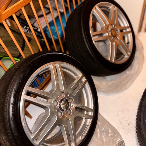 Mustat AMG-keskikupit eivät ole myynnissä vaan vanteiden mukana tulee hopeiset tähdellä varustetut.