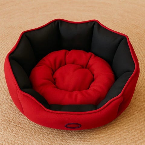 Myydään kuvienmukainen pehmustettu, soikeahkon mallinen koiranpeti. Leveys 45 cm, korkeus 20cm.