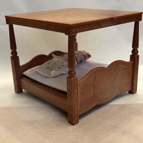 Sylvanian Families kaksikerroksinen lasten leikkihuonekalujen sänky, valmistettu puusta, vaaleanpunaisilla ja vaaleansinisillä yksityiskohdilla. Sopii lasten leluihin ja nukkeihin.