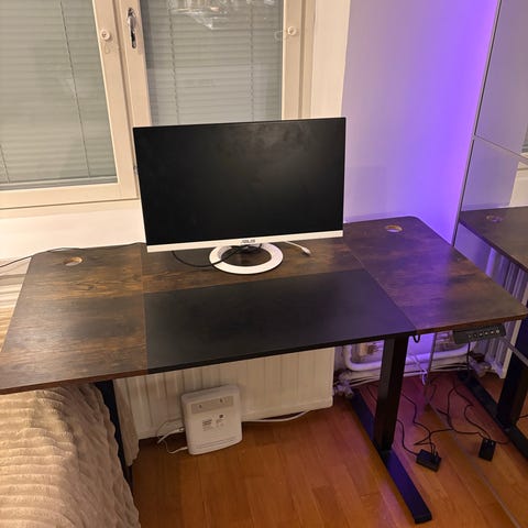 Muuton tieltä myyntiin sähköinen työpöytä. Käytön jälkeä on mutta vielä siisti seuraavalle. Tukeva ja painava pöytä.