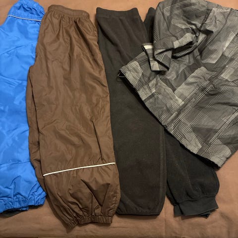 Mustat Ciraf softshell ulkohousut, vahvikkeet polvissa ja takapuolessa, Vihreä Ciraff välikausitakki. Kahdet farkut joista toiset pillit ja toisissa vyötäröllä säätäkuminauhat, polvessa pieni reikä. Popin yökkäri ja Joha yöpaita, kaksi t-paitaa Puma ja Nike, sekä ruudullinen kauluspaita. Vaatteet käytettyjä, mutta ihan siistejä. Takin hihoissa aavistus tummumaan, mutta voisi puhdistua tahranpoistolla. Polarnin yöpaidassa kaksi pientä rasvatahraa. Postikulut lisätään hintaan.