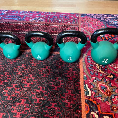 Myydään edullisesti vähällä käytöllä olleet 3 kpl kahvakuulia. Uudenveroiset ovat,sisätiloissa aina säilytetty. 4kg+6kg+8kg= 45 euroa yhteensä.