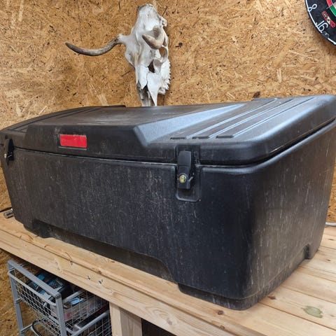 Uudenveroinen, lähes käyttämätön kuljetuslaatikko tarpeettomana.