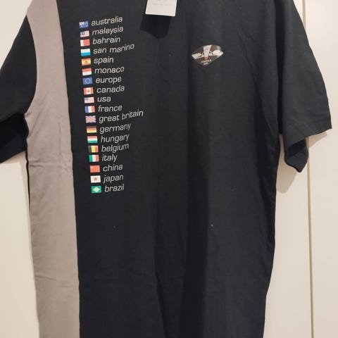 Kokotaulukko: https://firstformulastore.co/en/product/valtteri-bottas-cadillac-t-shirt-white/