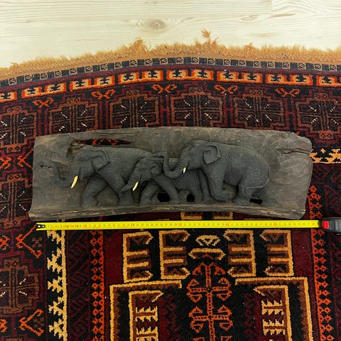 Puusta valmistettu ja akryyliväreillä maalattu seinäkoriste. Korkeus 18 cm, leveys 10 cm.
