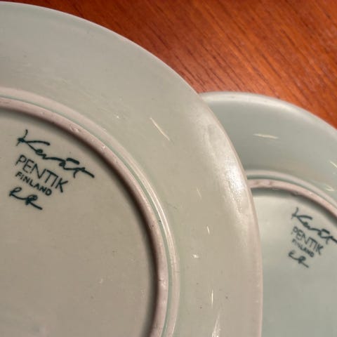 Yhdessä kupissa pieni palanen irronnut, tämä tulee kaupanpäällisenä. Muuten ei astioissa moitteita.