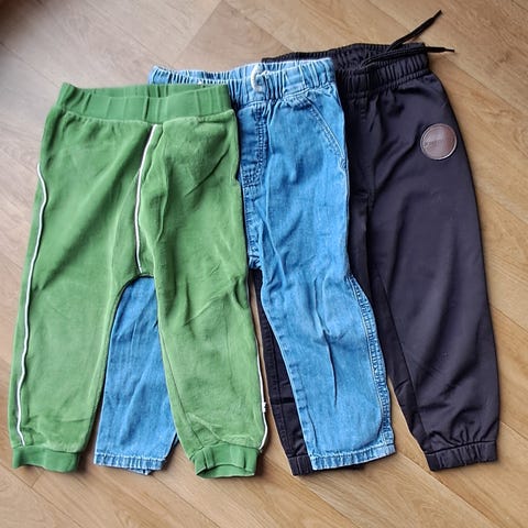 Myydään neljät housut arkikäyttöön. Jokaisen koko on 86.