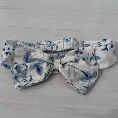 Pari kertaa käytetty rusettipanta, jossa takana joustava resori. Sopii n. 44-52 cm päähän.
