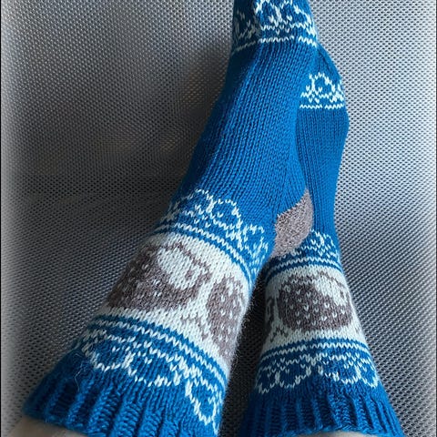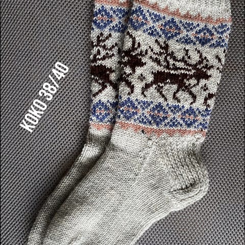 Lisäkuvissa muita sukkiani, koot merkitty kuviin.