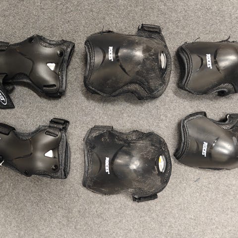 Myynnissä lasten koko S suoja pakkaus jossa polvisuojat, kyynärsuojat ja käsisuojat. Ostettu Stadiumista. Ovh 25€.