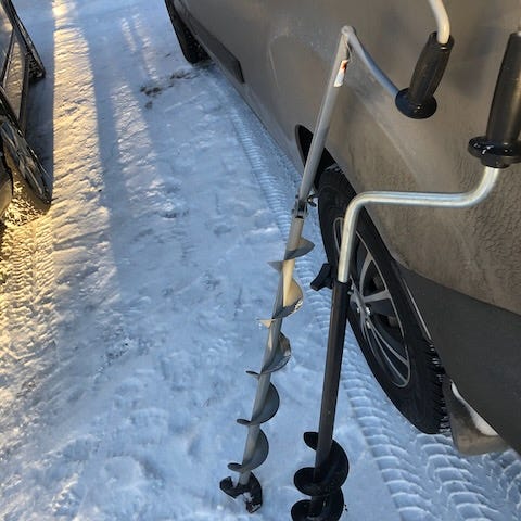 Tehtaan avaamattomassa pakkauksessa oleva Tamforce jääpora 49cc, 2-tahti, 1,8 kW/6500rpm sekä 6"kaira (150mm). Vastaava ovh n. 300 eur