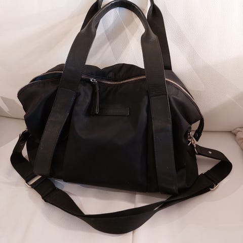 Laukussa on etu- sekä takapuolella vetoketjutaskut. Sisällä hyvin tilaa hoitotarvikkeille, neljä taskua laukun reunoilla sekä yksi vetoketkutasku. Laukussa on irrotettava pitkähihna joten laukkua voi pitää joko olalla tai kädessä kantaen. Lyhyempien hihnojen tyvessä pientä ompeleitten purkaantumista ei ole vaikuttanut käyttöön.
