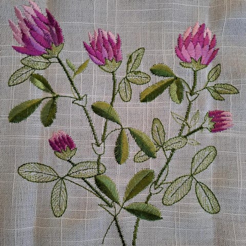 Ompelimossa teetetty kesäinen kaunis kappaverho. Luonnonvalkoinen, kevyt, läpikuultava kangas, jossa kukkakirjailut.