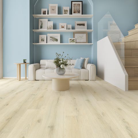 Vinyylilankku Premium Windsor Flooring SPC kivikomposiittirunko integroitu askeläänieriste. Harmaa Tammi 5x228x1524mm noin 6.5m2. Hunaja Tammi 6.5x228x1524mm noin 2.8 m2.