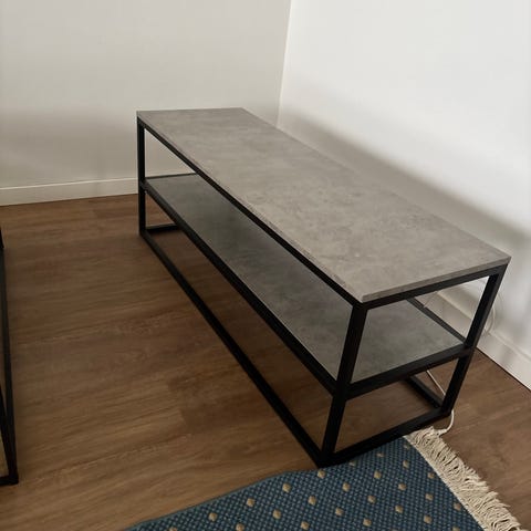 Olohuoneenpöytä, joka toimii TV tasonakin. Ei vikaa tai kolhua