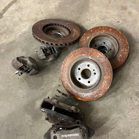 Kuskinpuolen etulolari lommoilla ja mätä, vaihtokunnossa sekin..