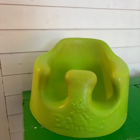 Myyntiin tarpeettomaksi jäänyt bumbotuoli. Hihnat löytyy, tarjotinta ei ole.