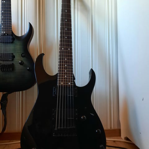 Ibanez RG sähkökitaran kaula, musta, jossa 24 otelautaa ja ruusupuu otelauta. Kaulassa on kuusi viritystappia ja tyypillinen Ibanez RG -muotoilu. Sopii sähkökitaran rakentamiseen tai korjaukseen.
